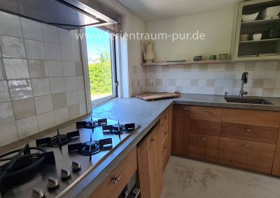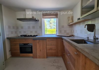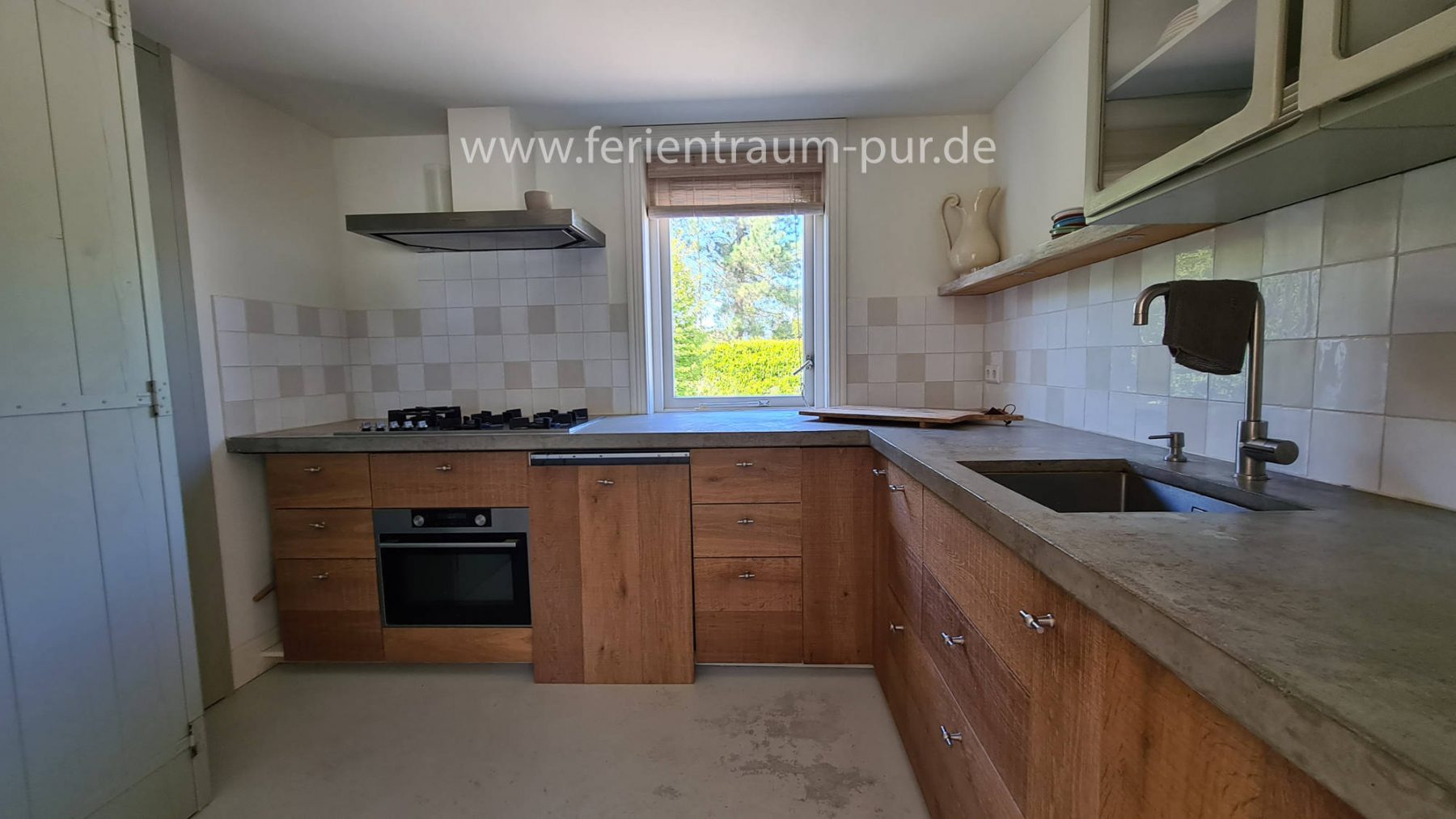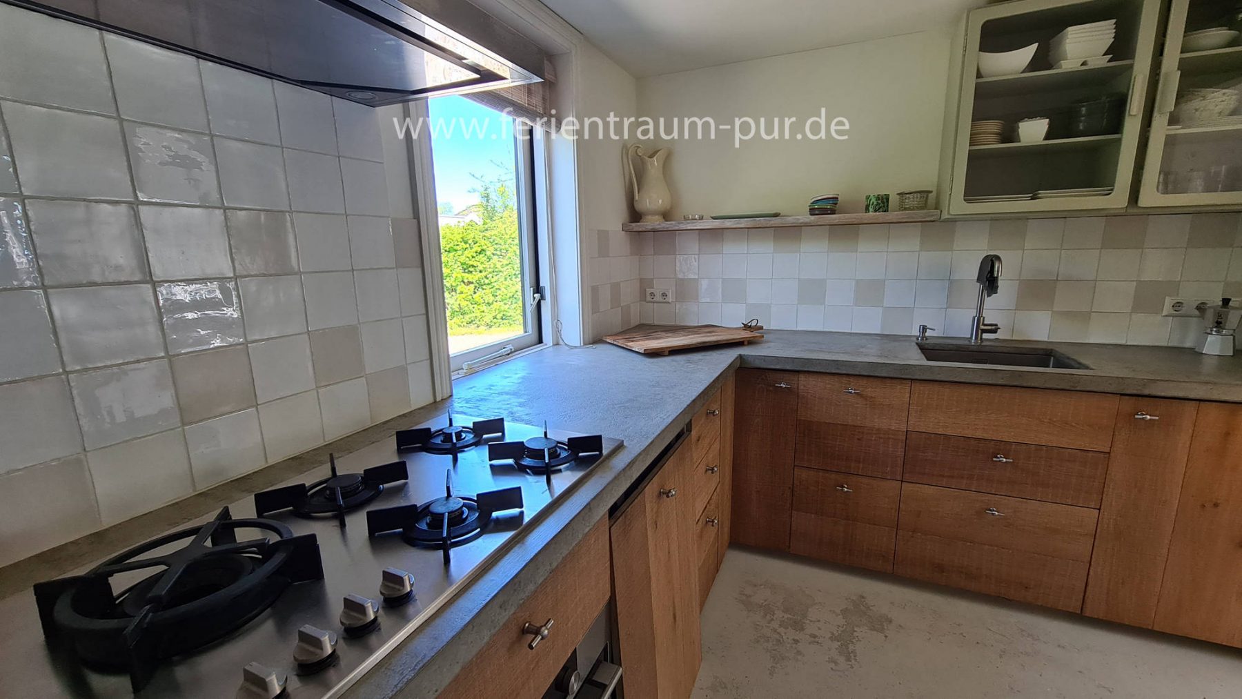Kühlschrank mit Gefrierfach, Gaskochfeld mit 5 Platten, Kombi Ofen mit Mikrowelle, Geschirrspülmaschine, Filter-Kaffeemaschine, Senseo, Wasserkocher.