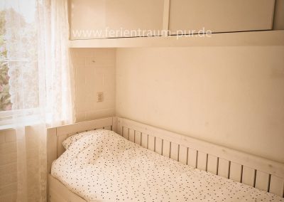 Schlafzimmer 2 mit einem Einzelbett 0,90x2m , Hängeschränken . Aus dem Einzelbett kann ein zweites Bett herausgezogen werden 0,80x2m, Kleiderschrank.