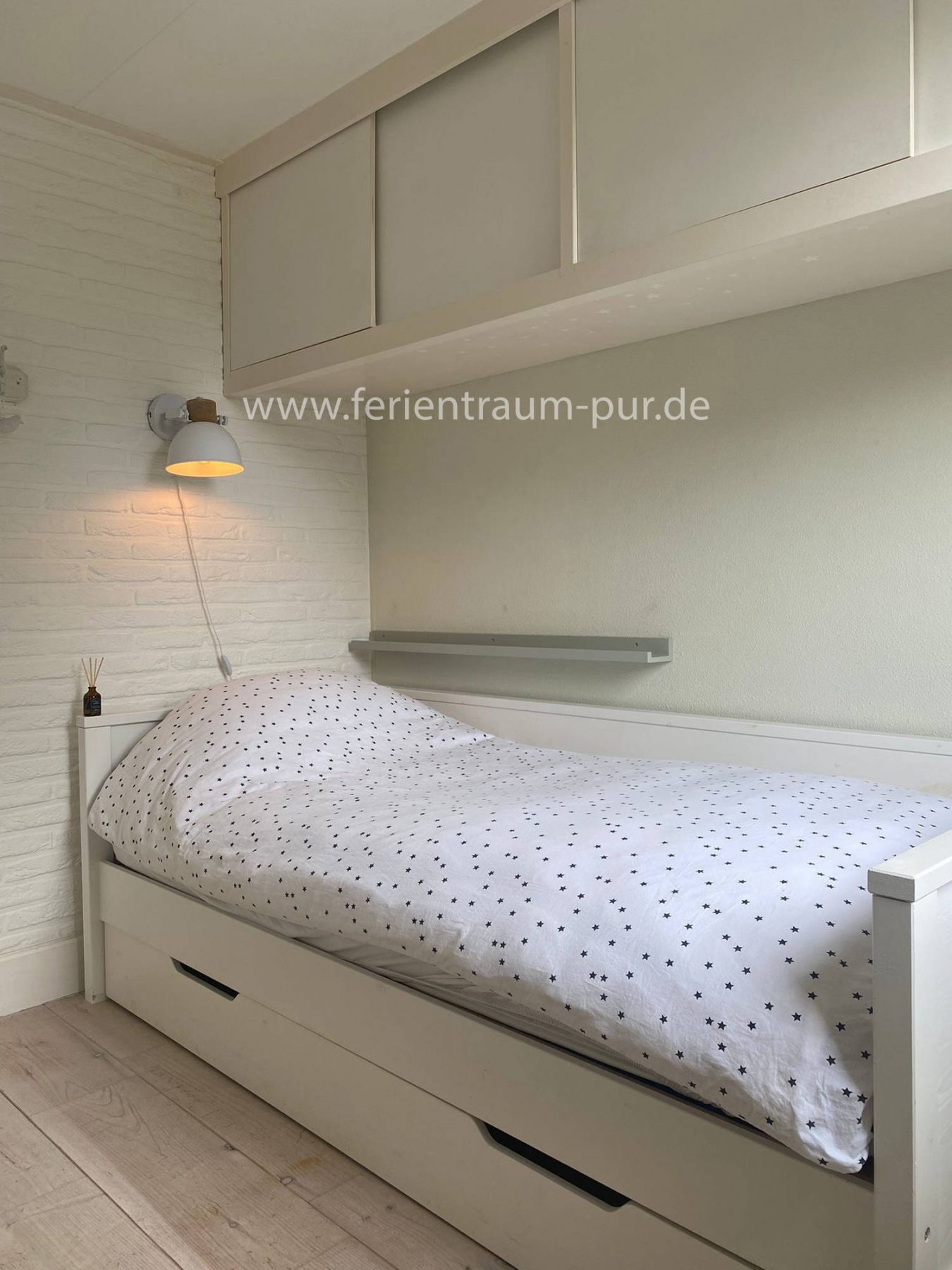 Schlafzimmer 3 mit einem Einzelbett 0,80x2m , Kleiderschrank, Hängeschränken
