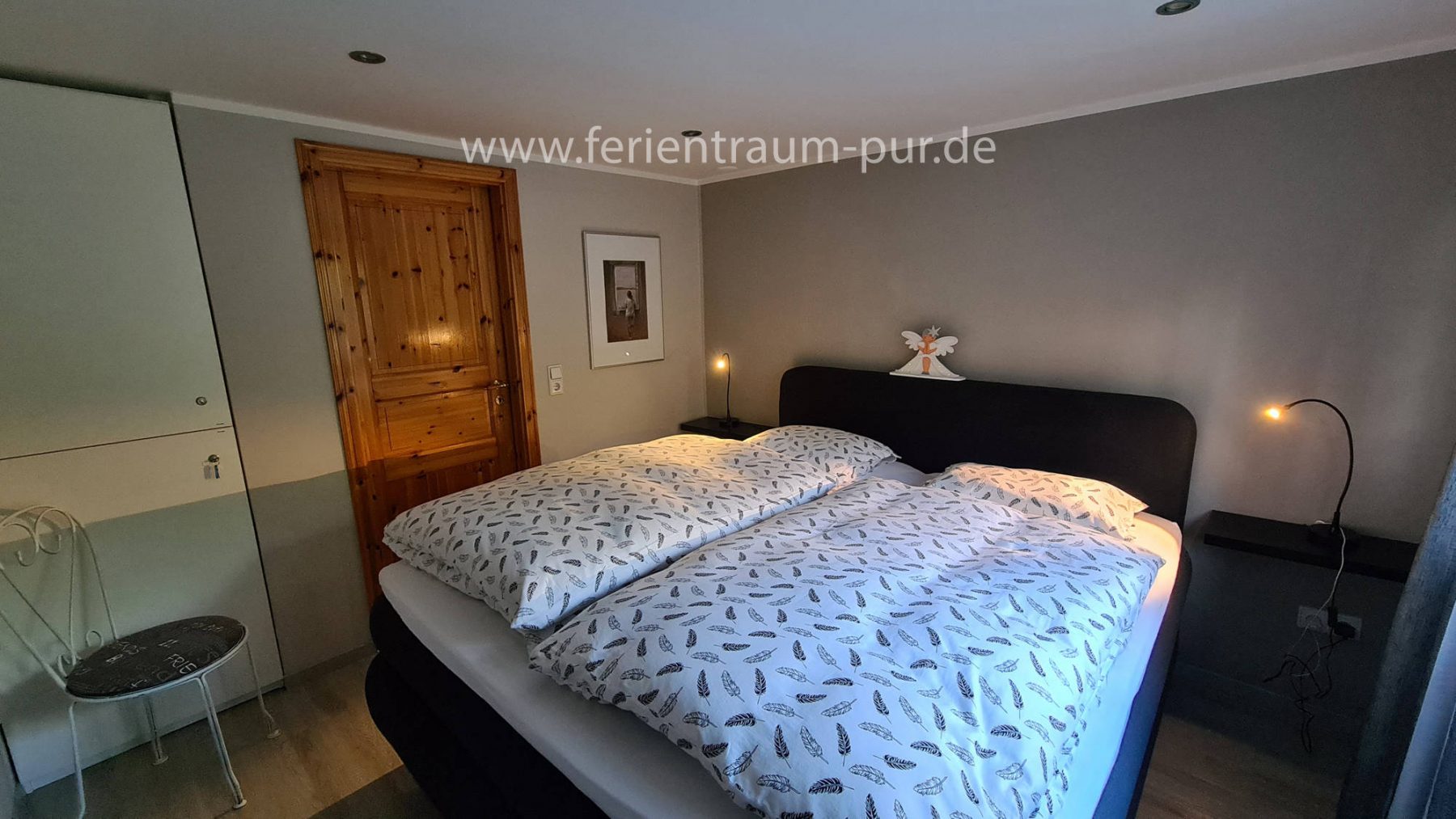 Schlafzimmer im EG mit 1 Doppelbett (Boxspringbett) 1,80 x 2m.