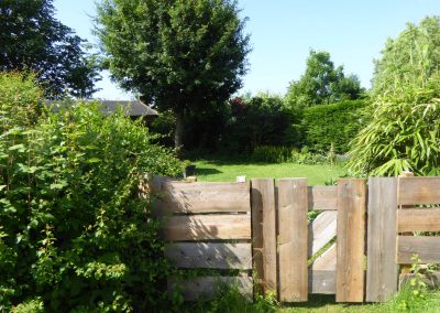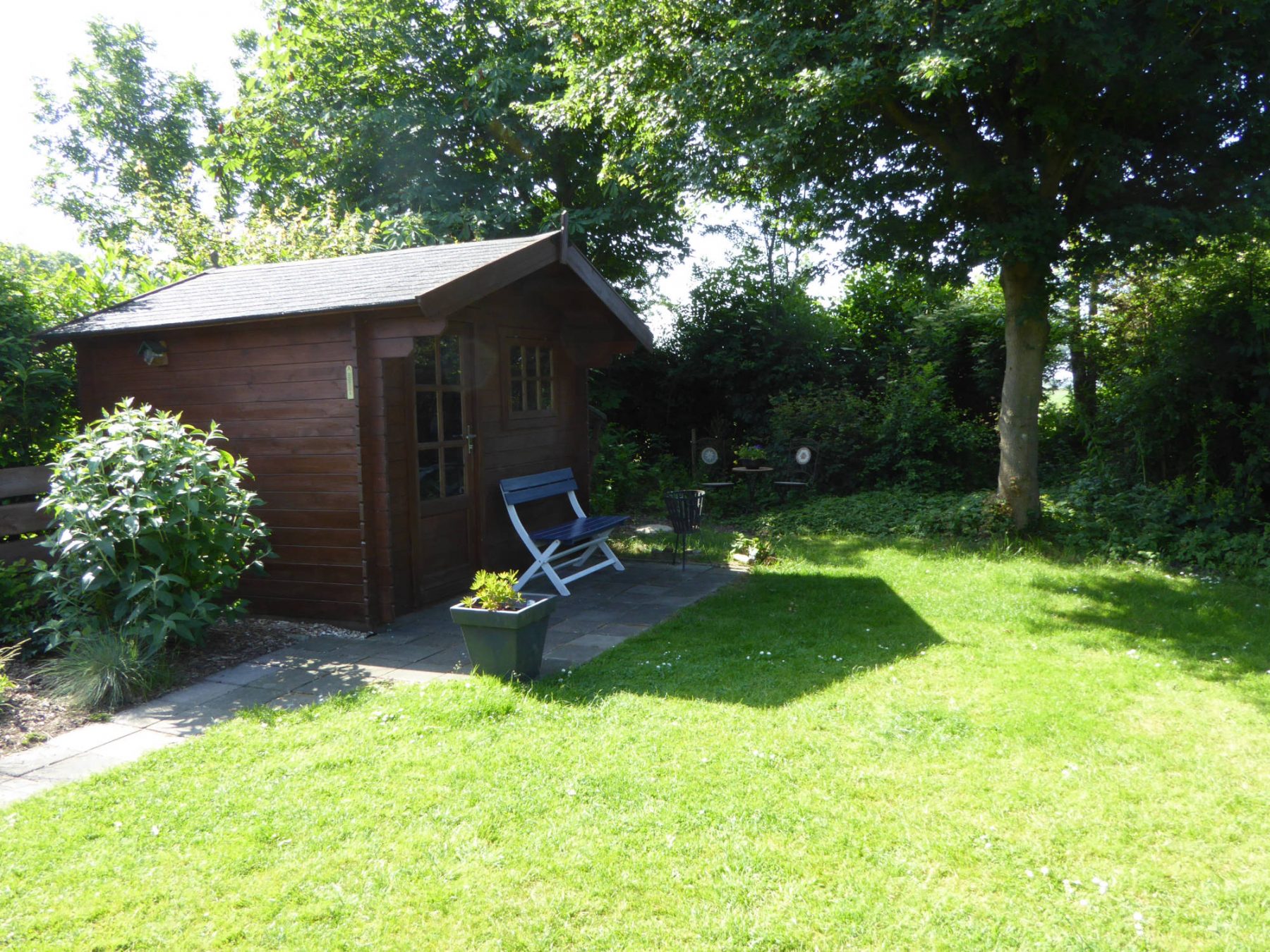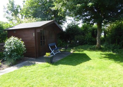 Das Gartenhaus kann mitbenutzt werden. Darin befindet sich ein Wäscheständer.