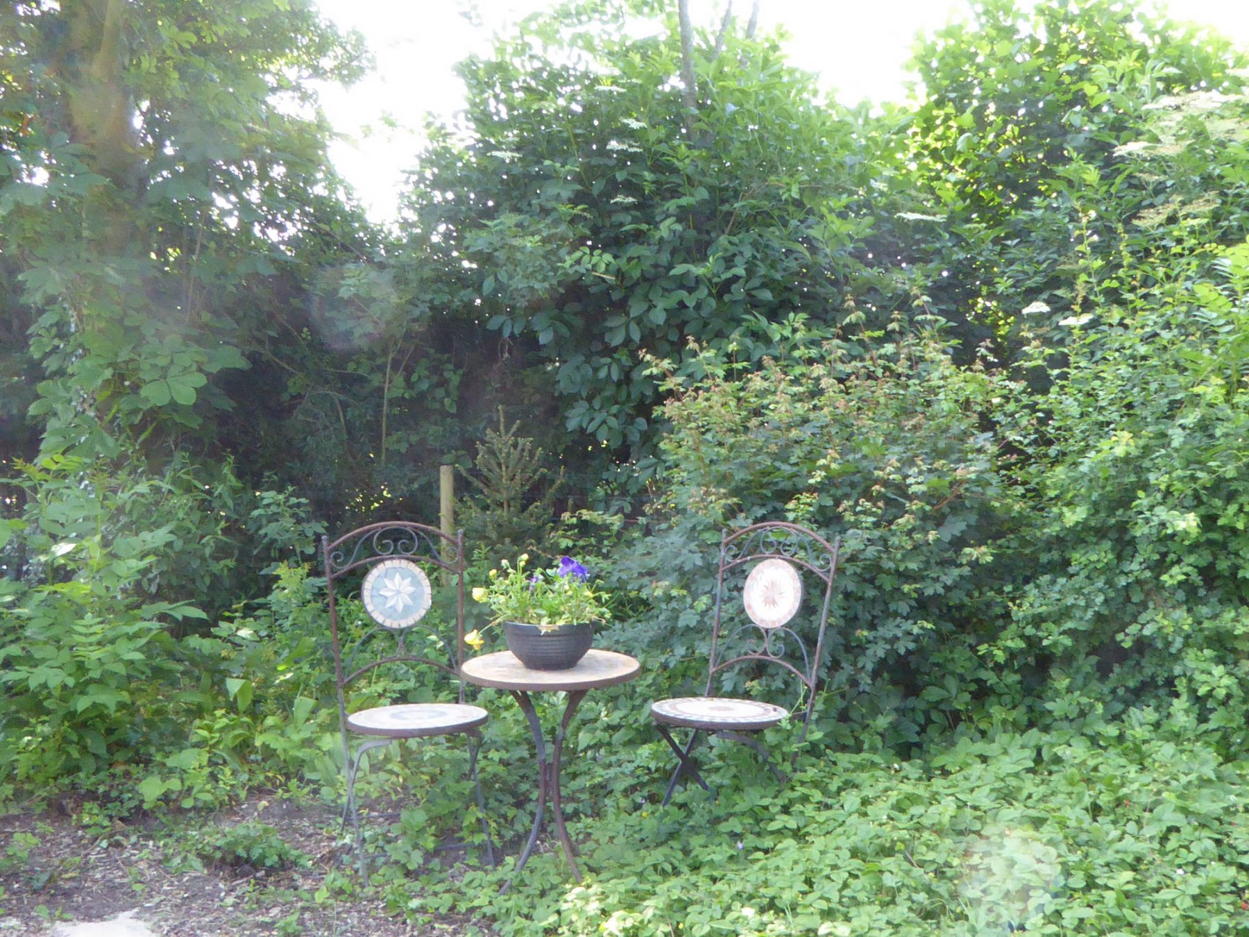 Schöner Garten mit großer Terrasse. Tisch, Bank, 4 Stühle, 2 Liegestühle, 1 Sonnenschirm, Grillen ist erlaubt.