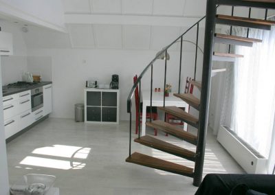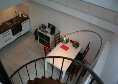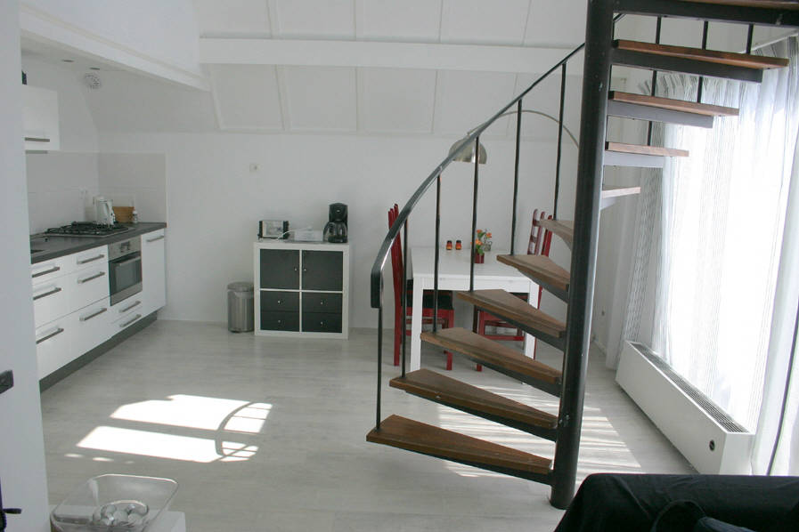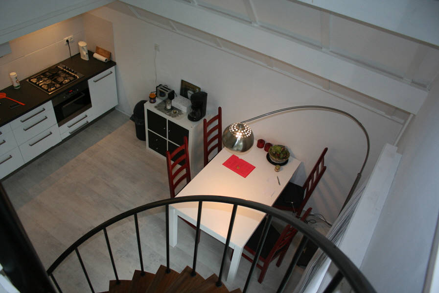 Auf der offenen Galerie bietet eine Klappmatratze eine weitere Schlafgelegenheit für ein Kind. Ebenso kann die offene Galerie als kleines Büro genutzt werden.(Tisch für Laptop vorhanden mit einem Stuhl).