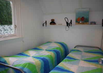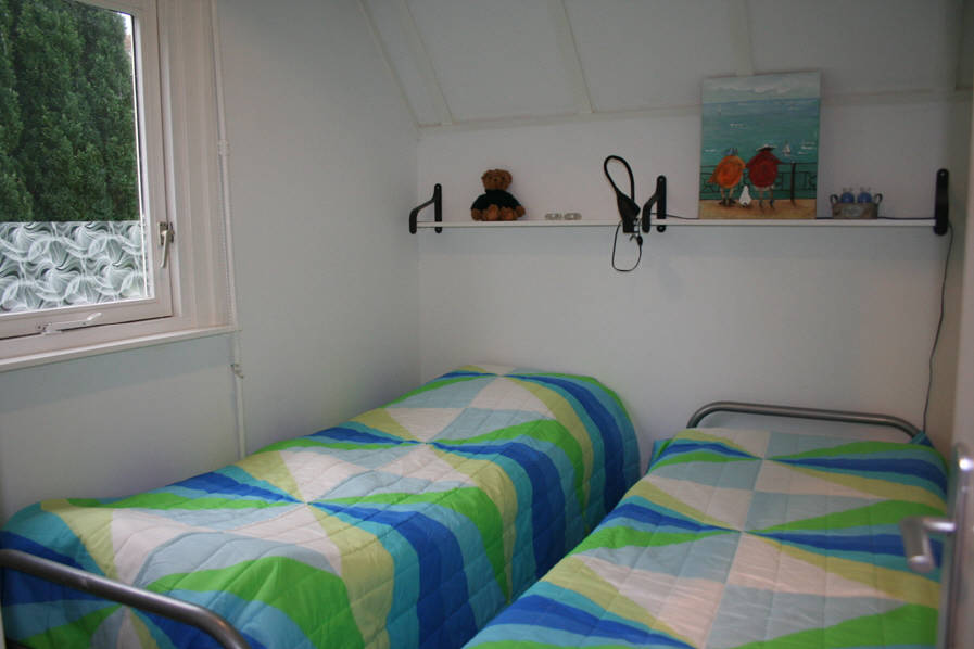 1 Schlafzimmer im Erdgeschoss mit 2 Einzelbetten a 0,80 x 2 m, 1 Kleiderschrank.