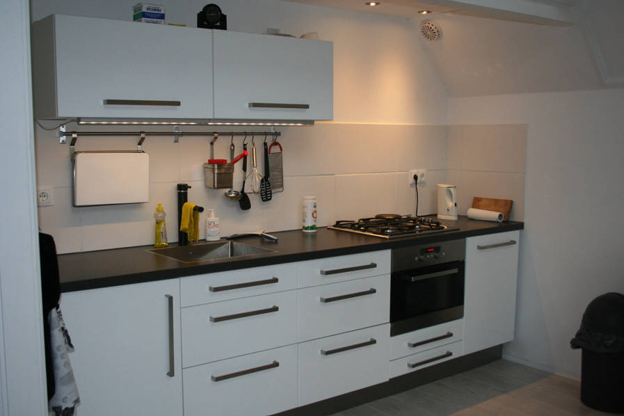 Ausstattung der Küche: Kühlschrank mit Gefrierfach, 4 Platten Gaskochfeld, Spülmaschine, Kaffeemaschine, Toaster, Kombiofen mit Mikrowelle, Wasserkocher, Zitronenpresse.
